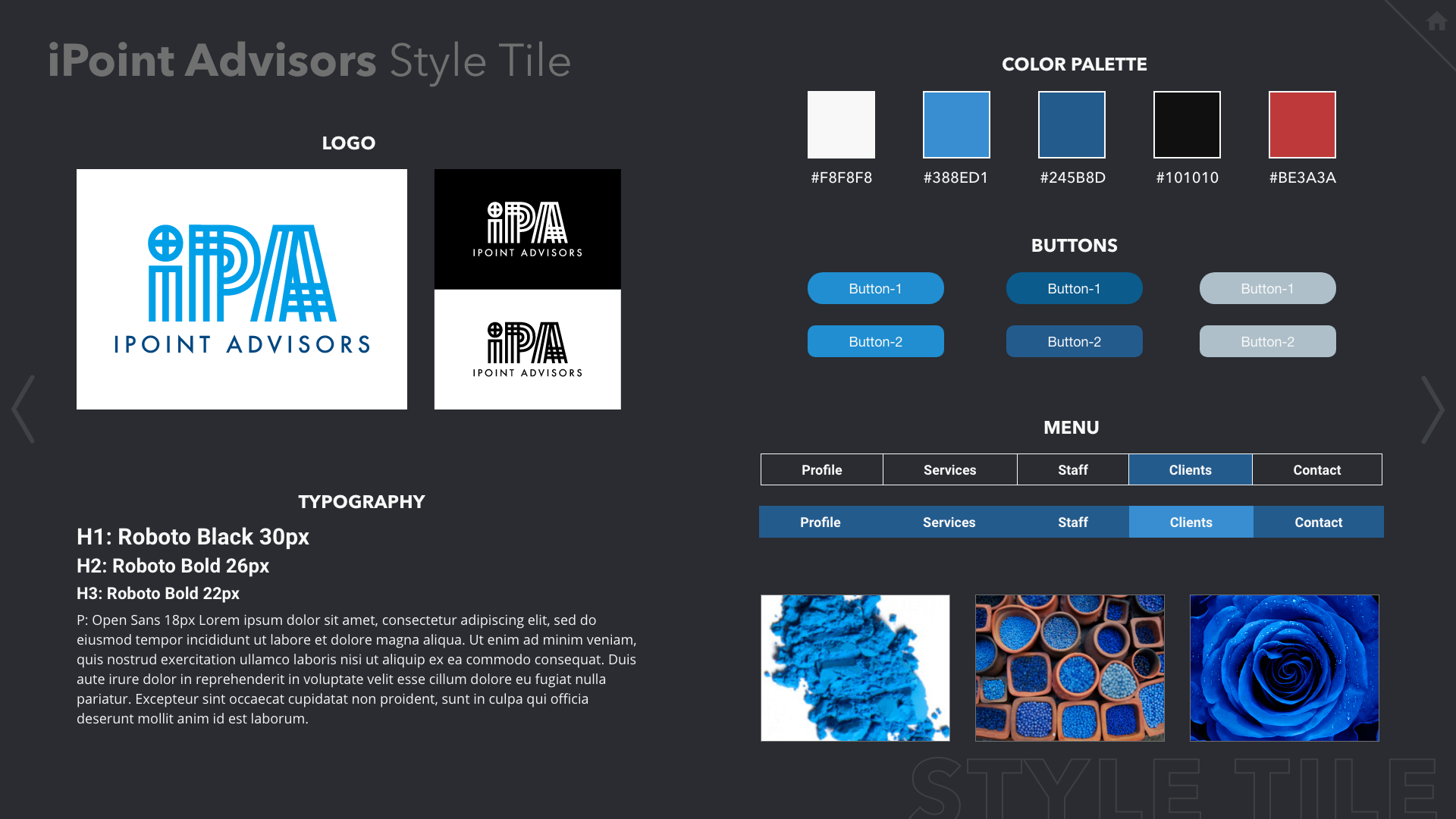 iPoint Advisors is a fictional management company for a class website project. I did not want to spend too much time designing the logo since this was not a logo design project therefore, I started on the computer. I began using various fonts to see what looked good and what did not. To take things to another level, I chose to use a favorite tool of mine, Illustrator's Blend tool to generate lines in between the original outlines. After adjusting a few parameters, I decided to add some cool colors and that was it, I had to move on to coding a site. I used this blue version for the website project.