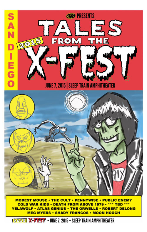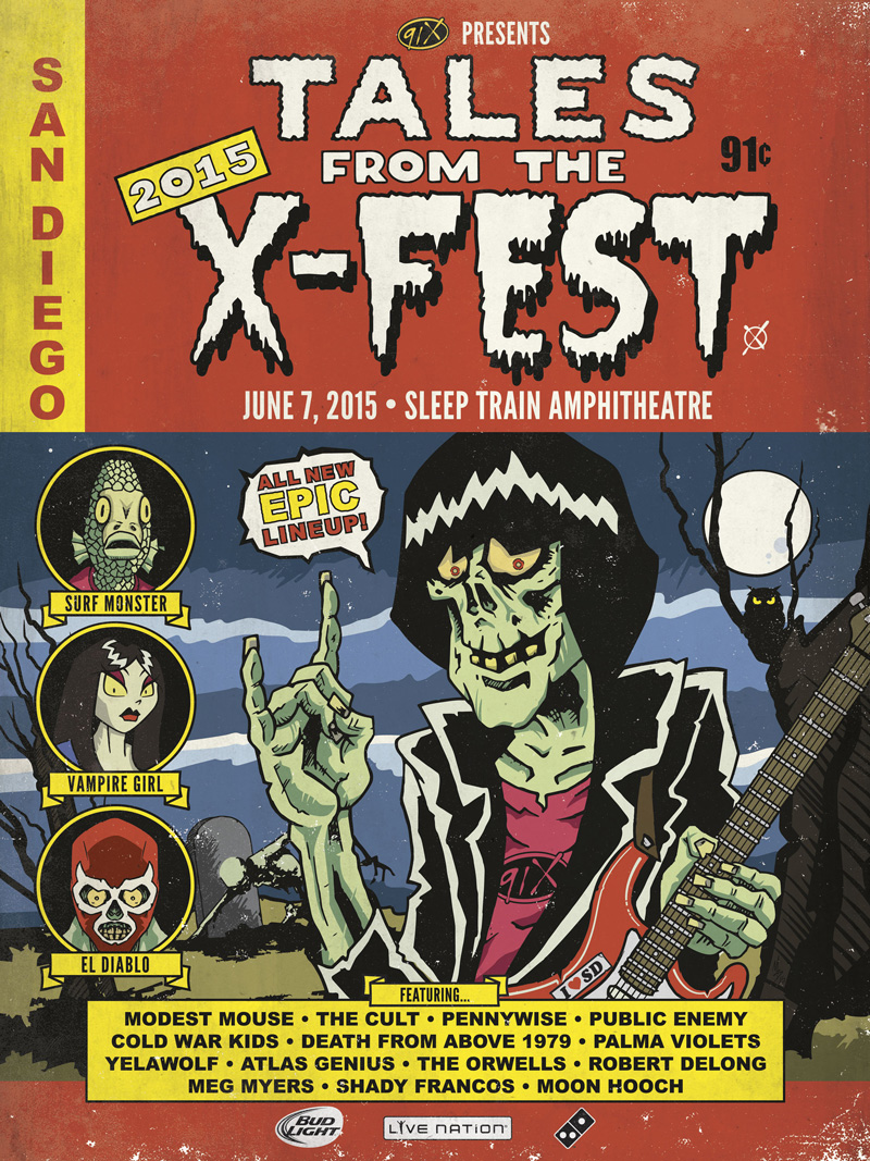 This poster was created for the 2015 91X X-Fest Poster Design Contest. I wanted to pay homage to the old Tales from the Crypt comics and add a little touch of The Ramones. Originally, I was going to create an X-Men themed design inspired by Jim Lee's 1990's comic book run, but I felt like a good smash up of comic book horror and punk rock would be better suited for the festival. Requirements fot the poster were: the event name, event date, station logo, venue name and participating bands.