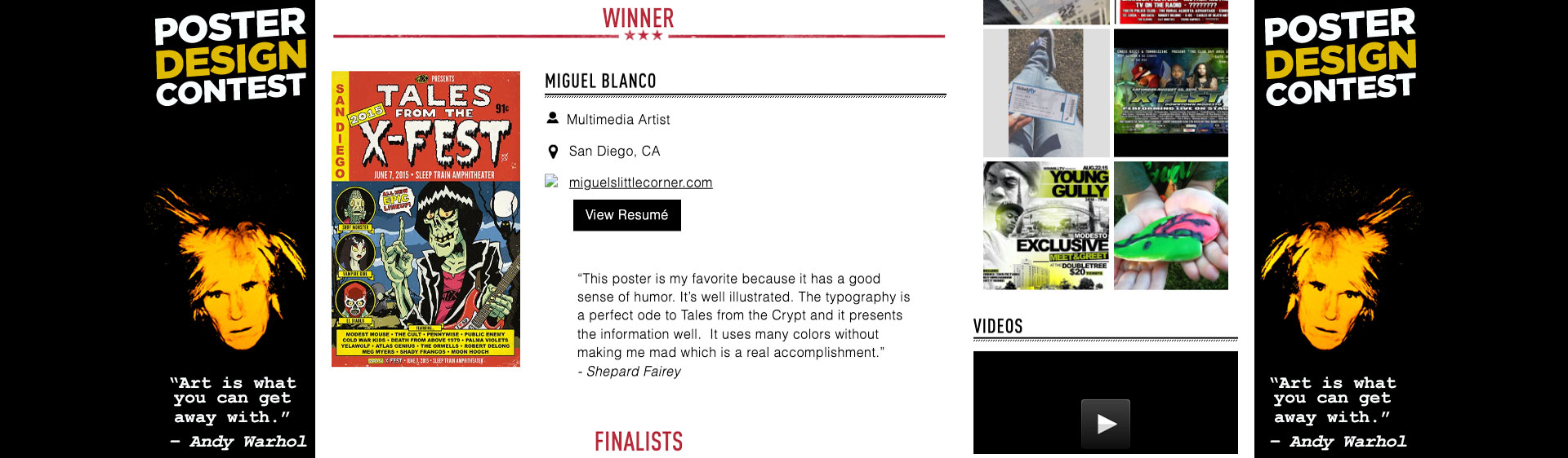 Other memorable moments were, seeing concert attendees picking up the poster and lovin' the design, being in the pit section watching the Cult rock out and guest judge, Shepard Fairey, commenting on my design.