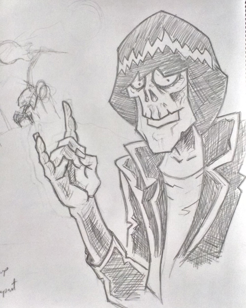 What I liked about this project was that I was able to add a little bit of me in the main character. I own a red guitar, I rock out to The Ramones, and I grew up watching the Tales from the Crypt tv show on late night cable tv when I was a kid.